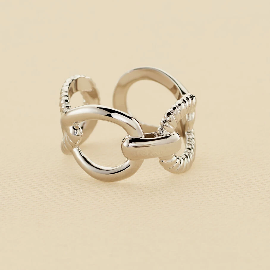 Bague, en argent véritable, formée par un entrelac de gouttes lisses et torsadées