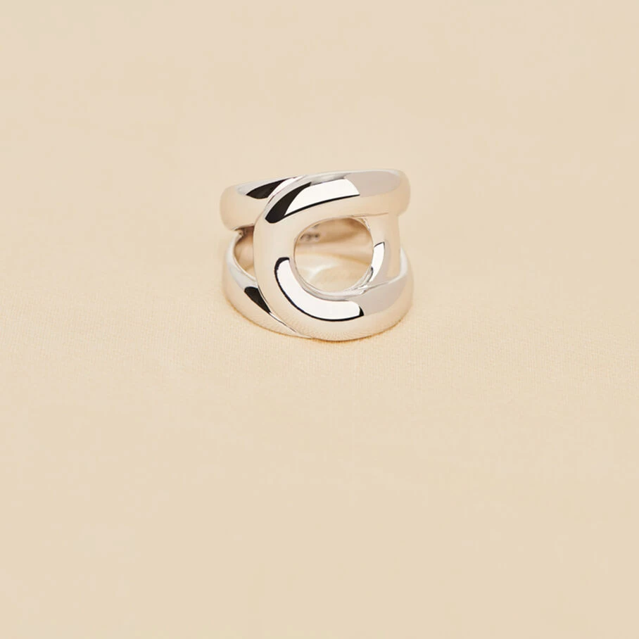 Bague large en argent véritable formée de deux fils arrondis superposés