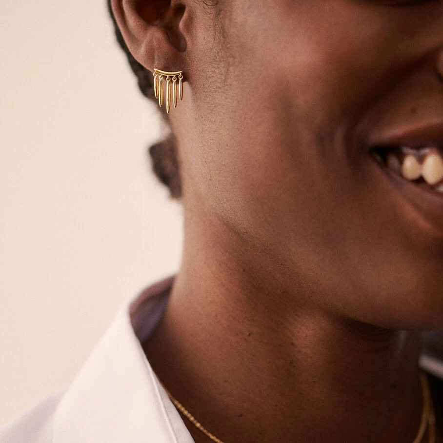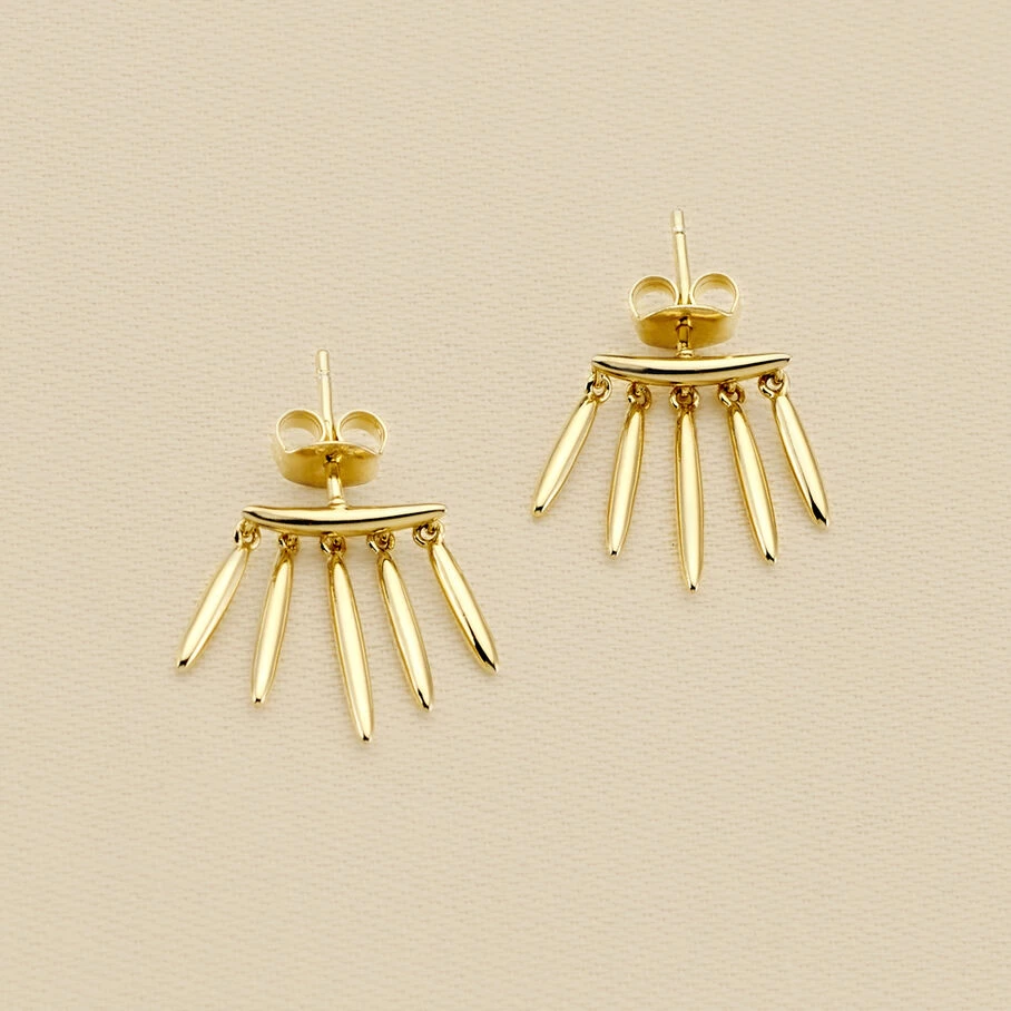 Boucles d’oreilles puces, en argent véritable 925/1000 et dorées 750/1000, ornées d’un rideau de pampilles rayonnantes.