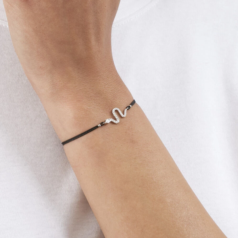 Bracelet cordon ornĂ© d’un serpent en argent vĂ©ritable pavĂ© d’oxydes de zirconium