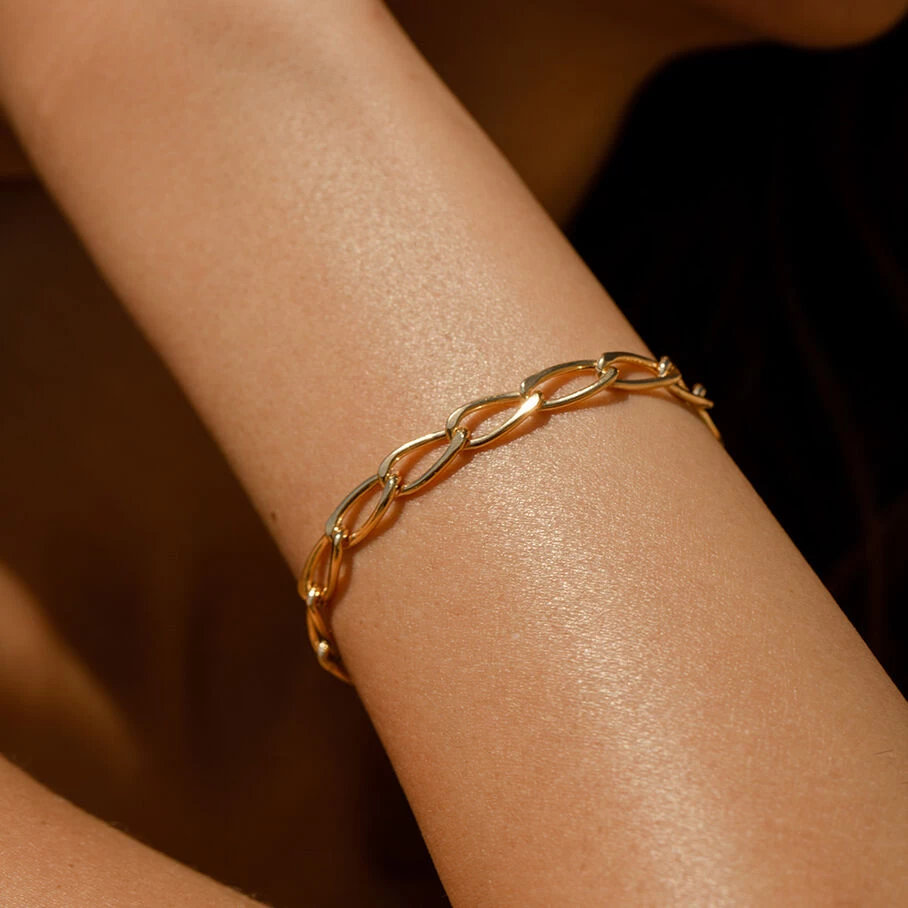 Bracelet en argent vériable doré 750/1000 fait de maille allongée.