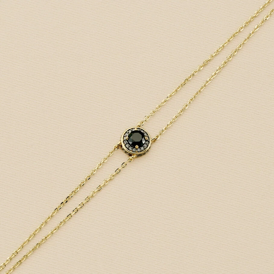 Bracelet chaine, en argent véritable doré 750/1000, avec un mini oxyde rond autour duquel sont micro sertis des oxydes de zirconium