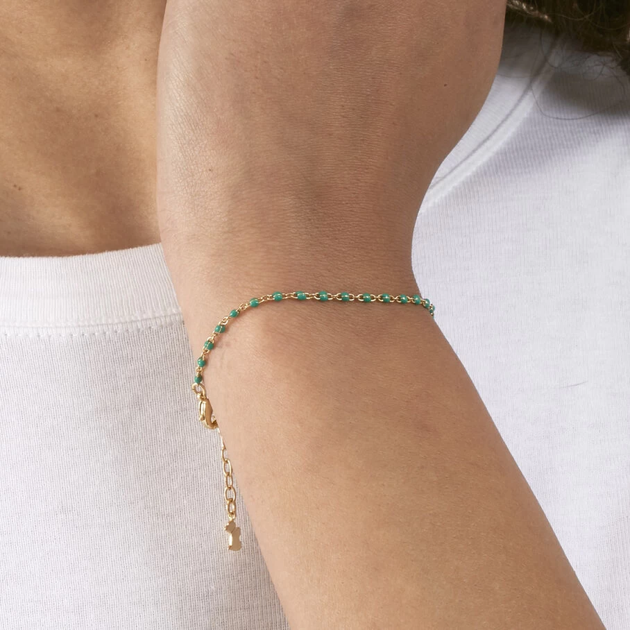 Bracelet, en laiton doré 750/1000, perles d’émail sur toute la longueur
