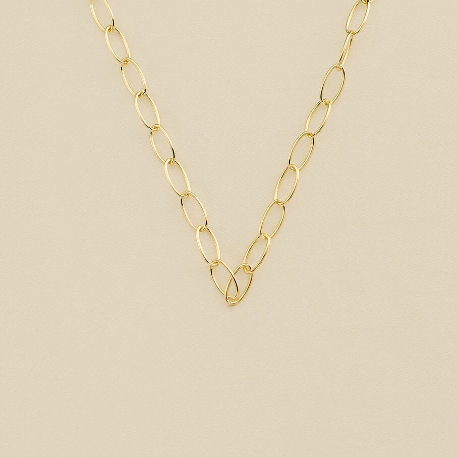 Collier chaine, en laiton doré, composé de maillons ovales allongés