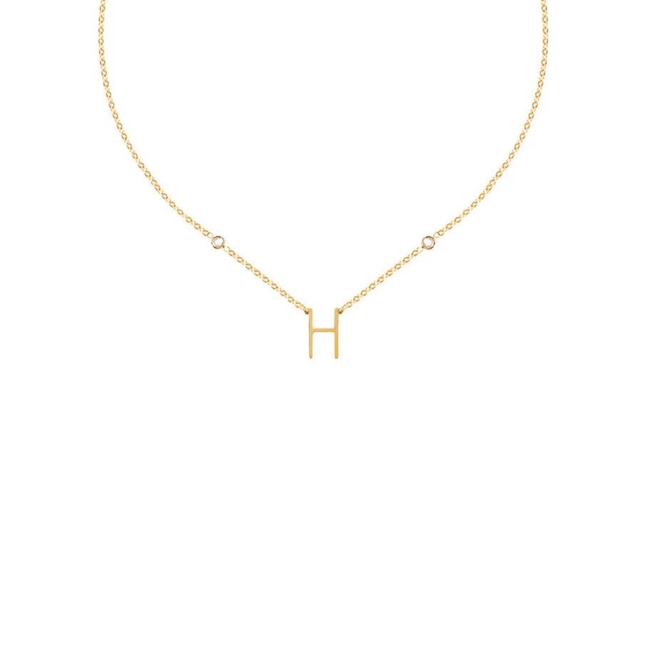 Collier fin composé de la lettre H et de deux oxydes de zirconium. Longueur: 42cm
