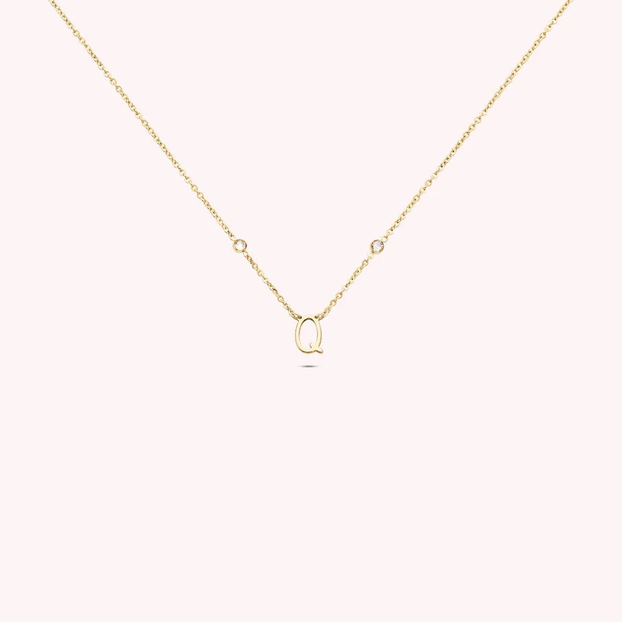 Collier fin composé de la lettre Q et de deux oxydes de zirconium. Longueur: 42cm