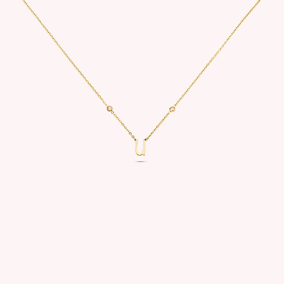 Collier fin composé de la lettre U et de deux oxydes de zirconium. Longueur: 42cm