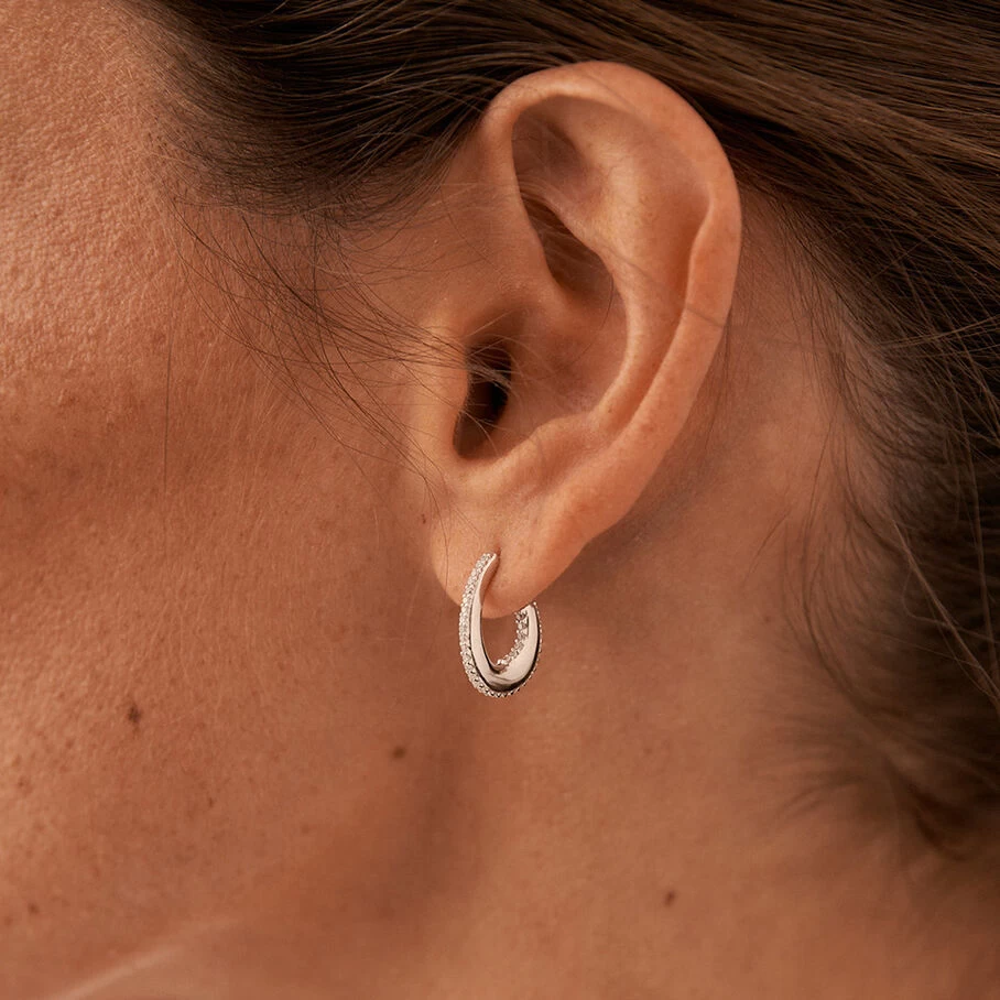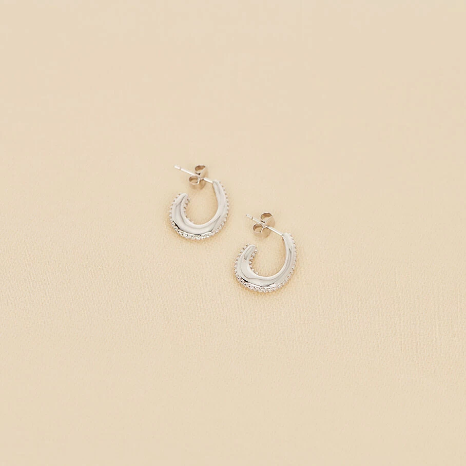 Créoles, petit modèle, en argent 925/1000, représentant une demi goutte et dont la tranche est sertie d’oxydes de zirconium