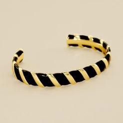 Jonc ouvert, en laiton doré, avec un effet torsadé en émail