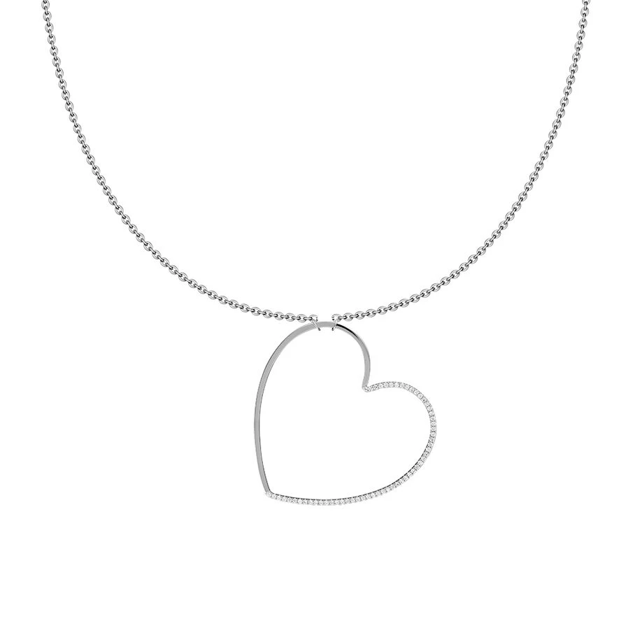 Sautoir en argent véritable orné d’un cœur évidé pavé d’oxydes de zirconium